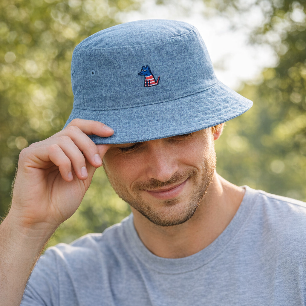 Celebrate the USA's 250th birthday in style with the vintage feeling bucket hat. Light enough for hot summer weather, but pawfect for keeping that pesky sun out of your eyes. Adorned with an embroidered Flag Teddy print - a custom piece made just fur you.
