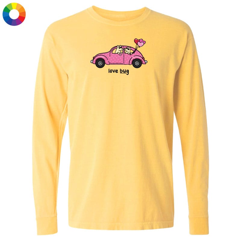 This Seaglass or Butter unisex long sleeve tee is crafted from 100% combed, ringspun cotton for ultimate softness and comfort. Like all our puppy-soft apparel, it’s proudly decorated in the USA and is easy to care for—just machine wash and dry.