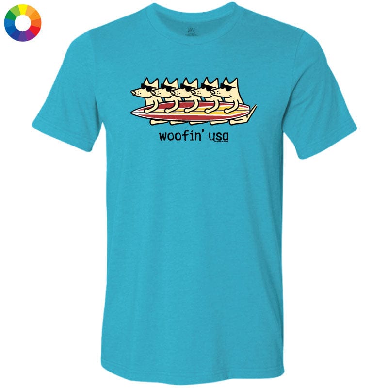 Stay comfortable in this unisex Heather Peach or Heather Aqua lightweight tee, crafted from a soft cotton-poly blend. This ultra-cozy shirt feels as gentle as a puppy’s touch and is proudly decorated in the USA. It's easy-care, too—just toss it in the machine to gentle wash and air dry.