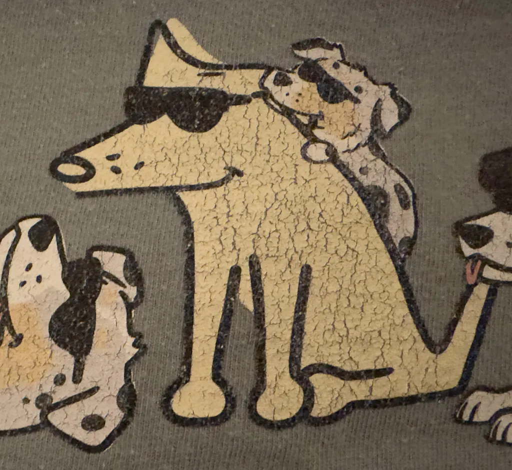 I found the print to fade quickly and on lighter colored shirts there is a dark square the can be seen behind the transfer. Although not on this particular shirt. Love the shirts but will most likely limit purchases.