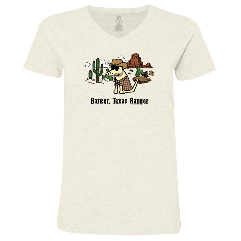 This ladies' v-neck tee, available in natural heather, offers softness and style. The natural heather is made from a cozy cotton-poly blend.