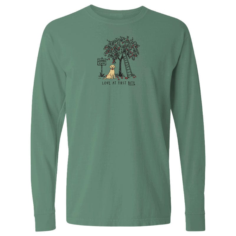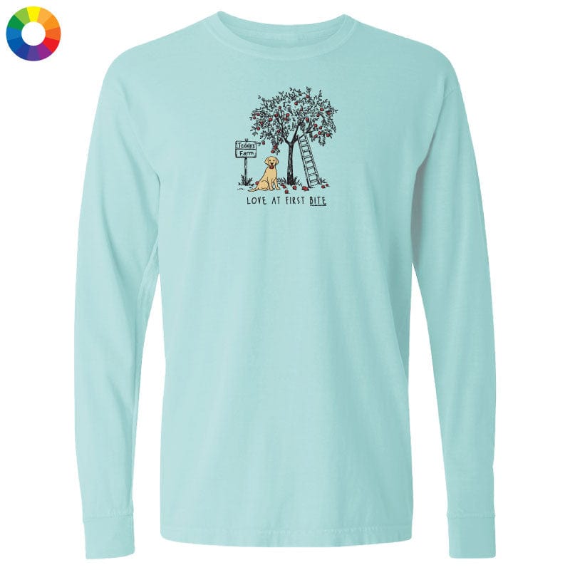 This Mountain Spruce or Sky Blue unisex long sleeve tee is crafted from 100% combed, ringspun cotton for ultimate softness and comfort. Like all our puppy-soft apparel, it’s proudly decorated in the USA and is easy to care for—just machine wash and dry.