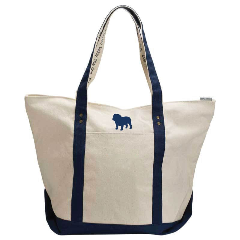 This zip top canvas tote is cloth lined with interior zip pocket and exterior open pocket. The rugged handles and embroidered Bulldog is totes adorable, amiright? The tote is 15" deep and 21" wide, big enough to carry all your adventure essentials.