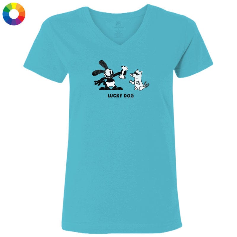 This ladies' v-neck tee, available in granite or aqua, offers softness and style. The aqua option is crafted from 100% combed, ringspun cotton, while the granite is made from a cozy cotton-poly blend.