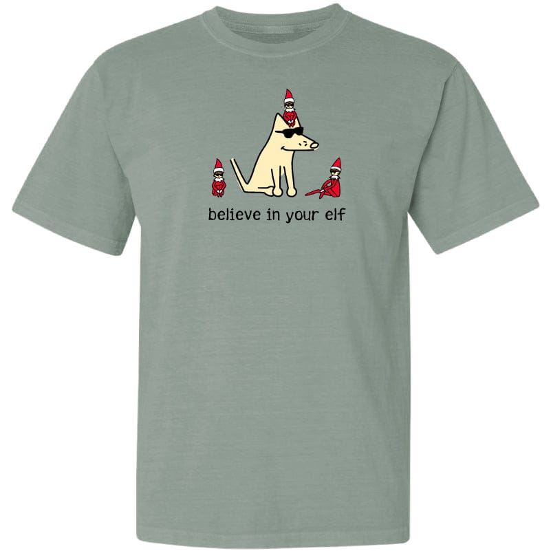 This seaglass classic tee is puppy soft and decorated right here in the U.S.A. Machine wash and dry.