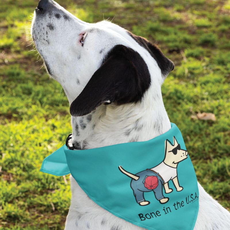 The dogs deserve to wear Teddy too! Keep them stylish with my colorful doggie bandanas. Made of 100% combed, ringspun cotton, they'll withstand the toughest of play times. All my puppy soft apparel is decorated right here in the U.S.A. Machine wash and dry.
