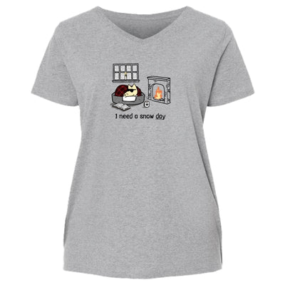 I Need A Snow Day - Ladies Curvy V-Neck Tee