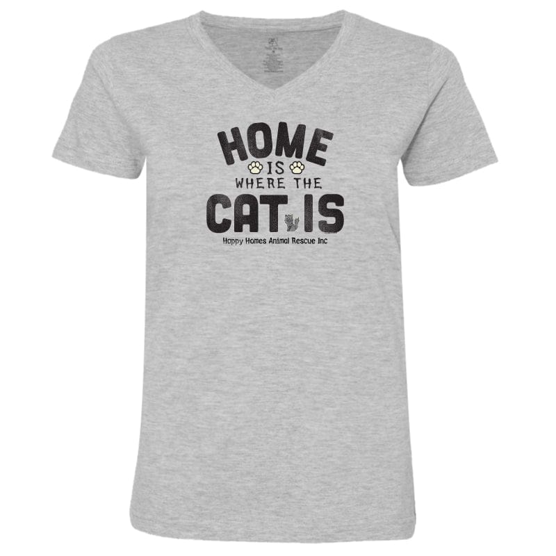 This ladies' v-neck tee, available in Heather Grey, offers softness and style. The Heather Grey is made from a cozy cotton-poly blend. Like all our puppy-soft apparel, it’s proudly decorated in the USA and is machine wash and dry for easy care.