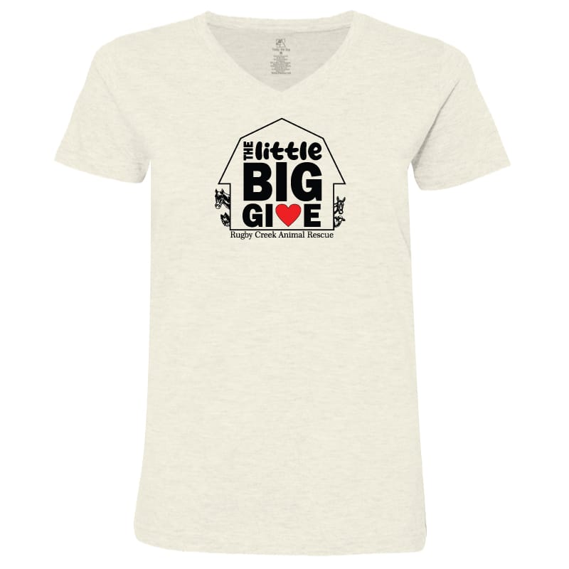 This Natural Heather ladies' v-neck tee offers softness and style. Crafted from 100% combed, ringspun cotton. Like all our puppy-soft apparel, it’s proudly decorated in the USA. Easy to care for—just machine wash and dry.