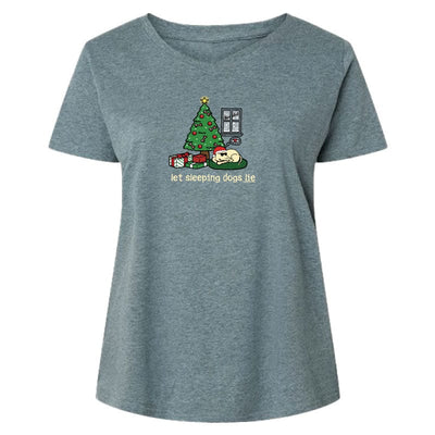 Let Sleeping Dogs Lie - Ladies Curvy V-Neck Tee