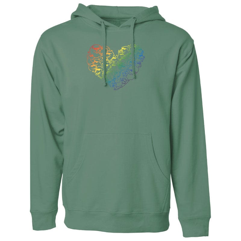 This unisex mountain spruce, sweatshirt, pullover hoodie, is 100% cotton, puppy soft, and decorated right here in the U.S.A. Machine wash and dry.