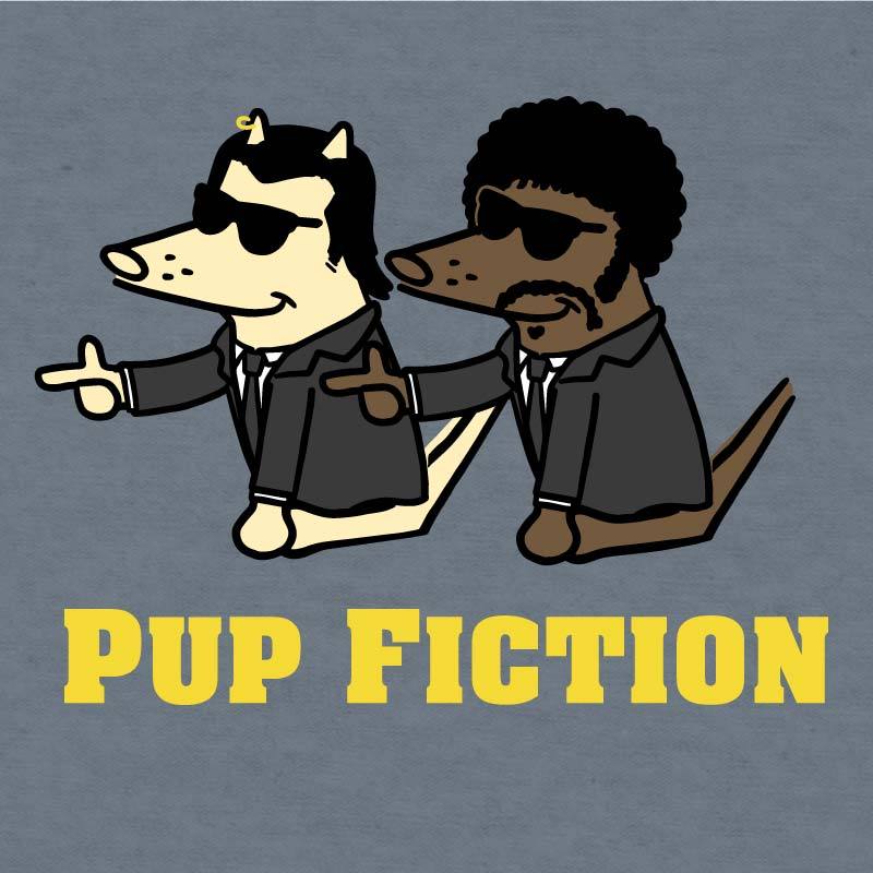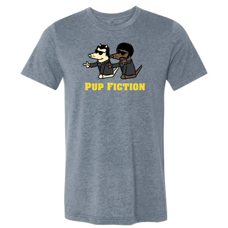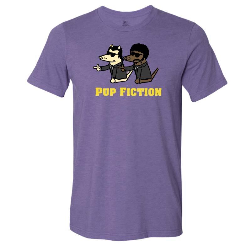 Pulp Fiction fans: This heather slate or heather purple, lightweight tee, is puppy soft and decorated right here in the U.S.A. Machine wash and dry.
