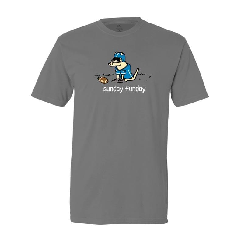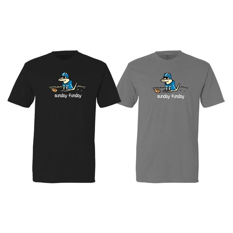 Get ready for Sunday Funday in these tees! These classic tees are puppy soft and decorated right here in the U.S.A. Machine wash and dry.
