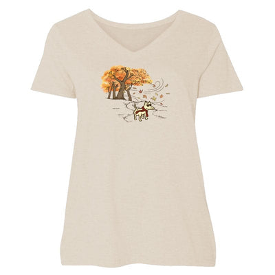 Dog Pile Autumn - Ladies Curvy V-Neck Tee