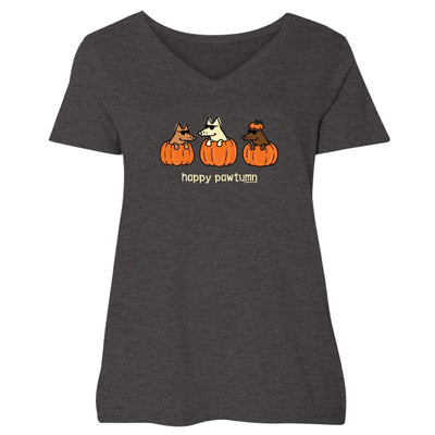 Happy Pawtumn - Ladies Curvy V-Neck Tee