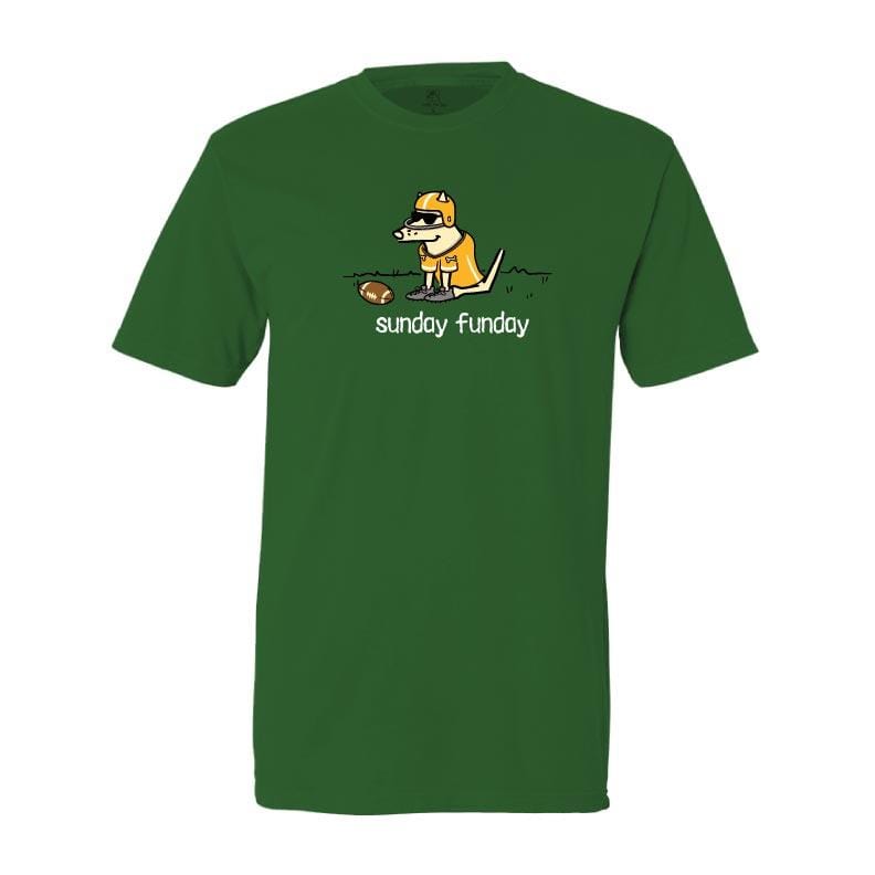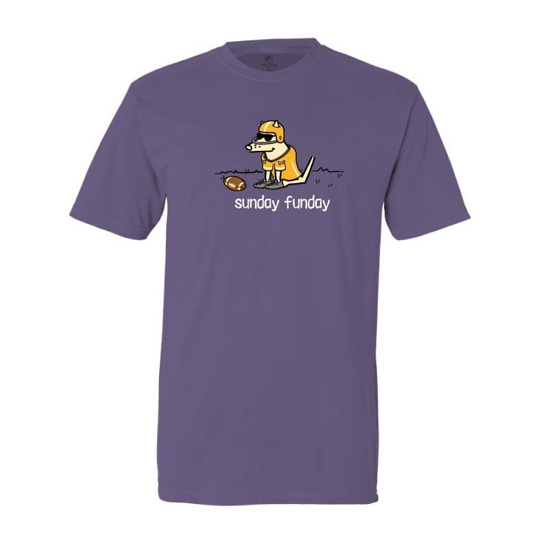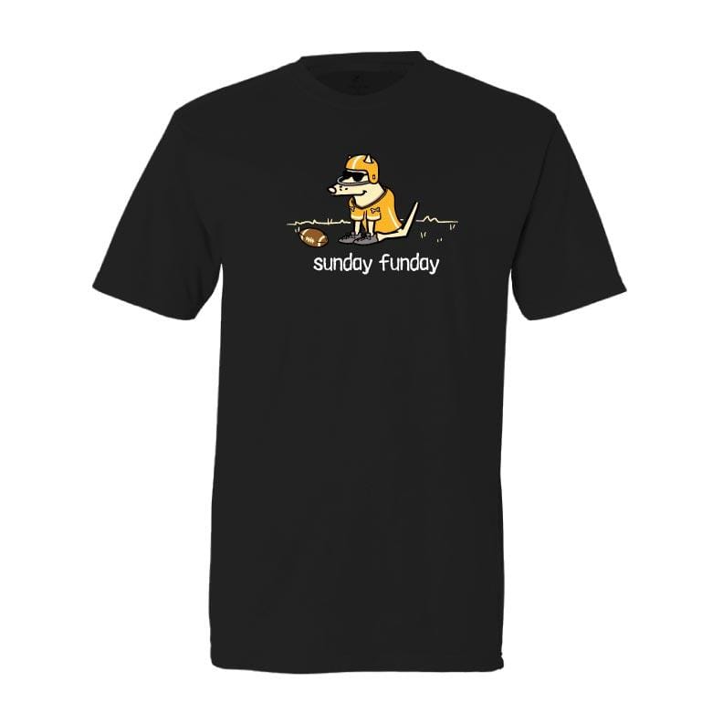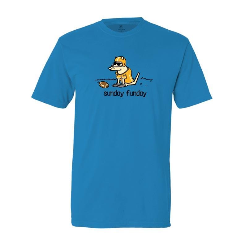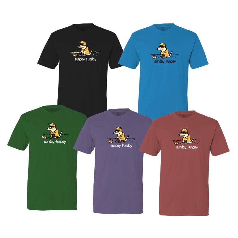 Get ready for Sunday Funday in this tee! These classic tees are puppy soft and decorated right here in the U.S.A. Machine wash and dry.