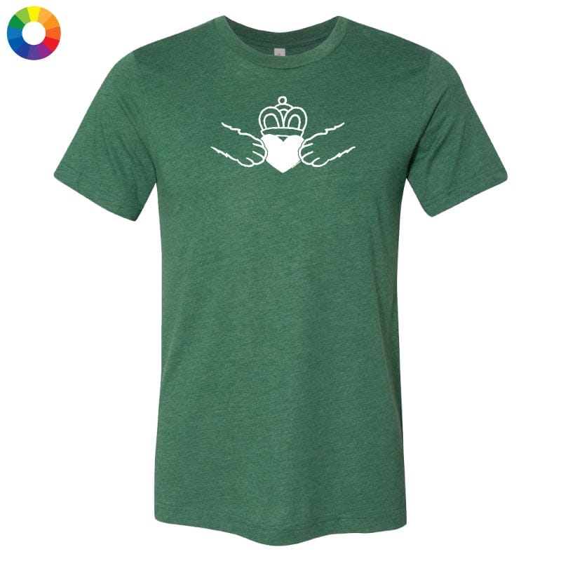 Stay comfortable in this unisex heather kelly green or heather grass green lightweight tee, crafted from a soft cotton-poly blend. This ultra-cozy shirt feels as gentle as a puppy’s touch and is proudly decorated in the USA. It's easy-care, too—just toss it in the machine to gentle wash and air dry.
