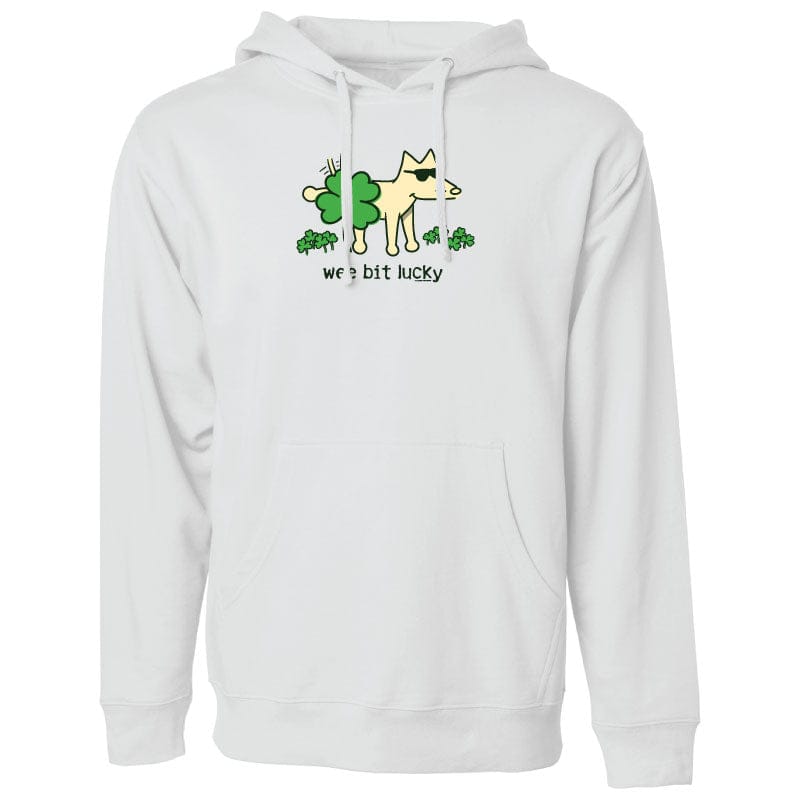 This white, sweatshirt, pullover hoodie, is a cotton/poly blend (60/40), puppy soft, and decorated right here in the U.S.A. Machine wash and dry.