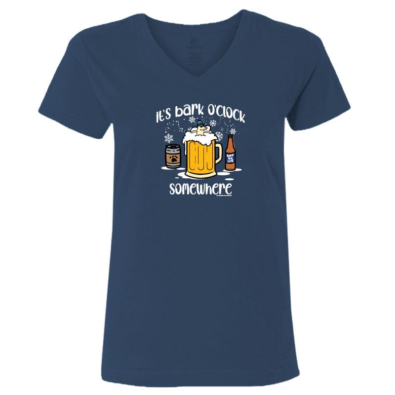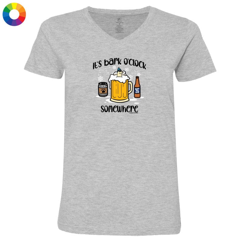 This ladies' v-neck tee, available in heather grey or navy, offers softness and style. The navy option is crafted from 100% combed, ringspun cotton, while the heather grey is made from a cozy cotton-poly blend. Like all our puppy-soft apparel, it’s proudly decorated in the USA and is machine washable and dryable for easy care.