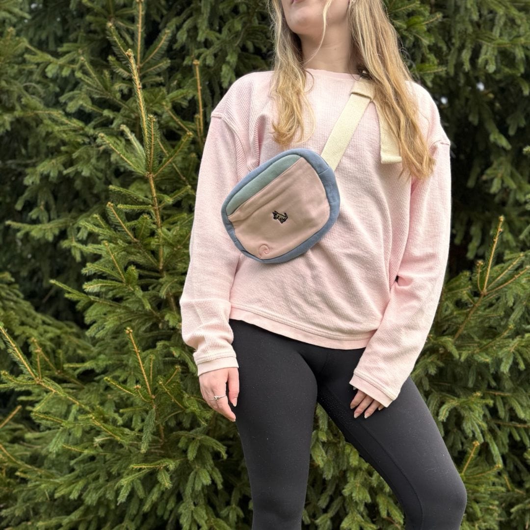 Keep all of the essentials on hand for those cozy morning dog walks. Your dogs favorite part is the treat pocket! This paw-crafted belt bag is unique and sustainable! Made alongside Beantown Brand, these bags are built from repurposed teddy apparel. This item helps you show off your passion for eco-friendly fashion. A must-have for a true Teddy fan.