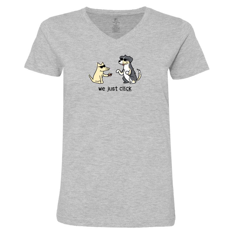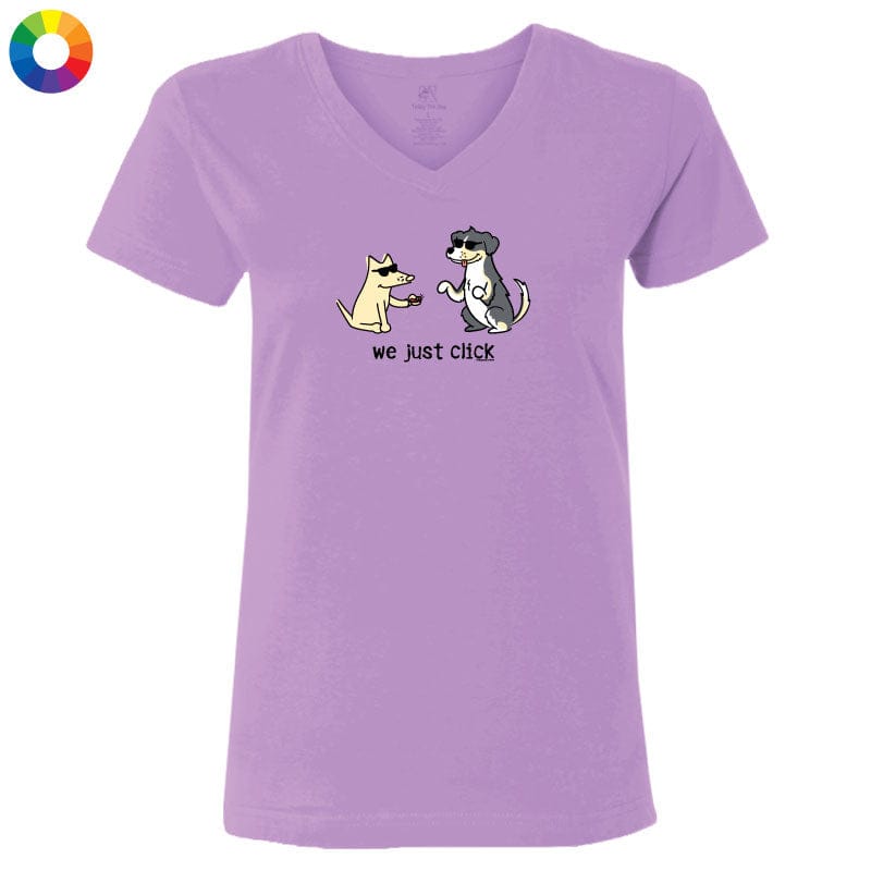 This ladies' v-neck tee, available in heather grey or lilac, offers softness and style. The lilac option is crafted from 100% combed, ringspun cotton, while the heather grey is made from a cozy cotton-poly blend. Like all our puppy-soft apparel, it’s proudly decorated in the USA and is machine wash and dry for easy care.