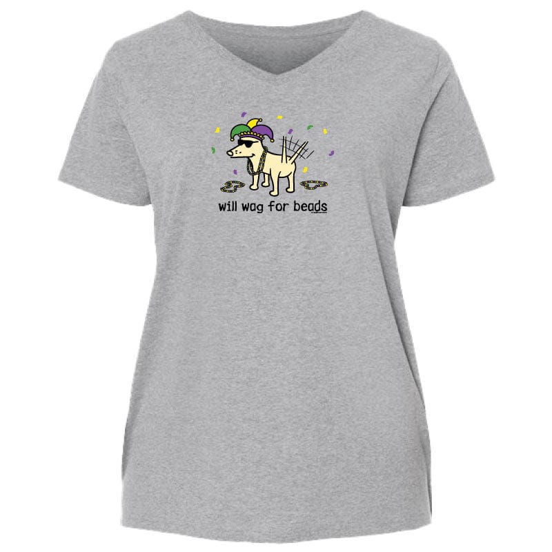 Will Wag for Beads - Ladies Curvy V-Neck Tee
