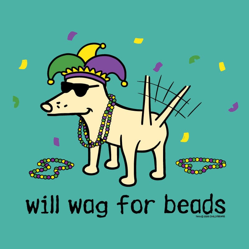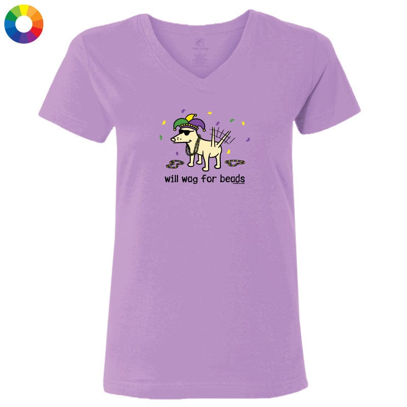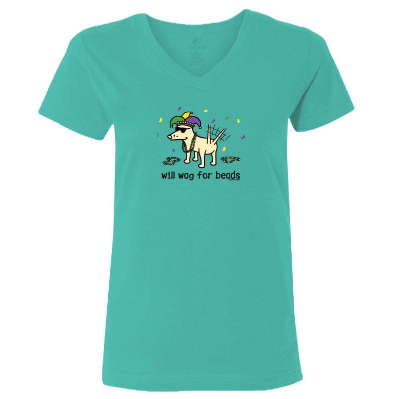 Will Wag for Beads - Ladies T-Shirt V-Neck