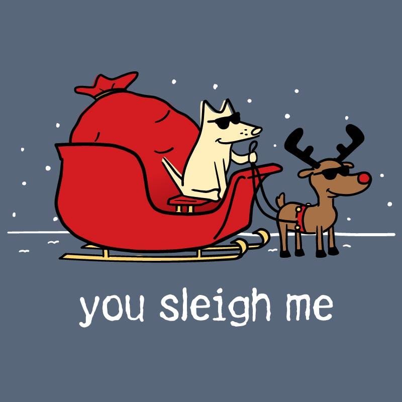 You sleigh me... you really do... especially in this classic tee . Made of 100% ring-spun cotton, all all my puppy soft apparel is decorated right here in the U.S.A. Machine wash and dry. Orders close on 11/5 with guarantee shipping by 11/11.