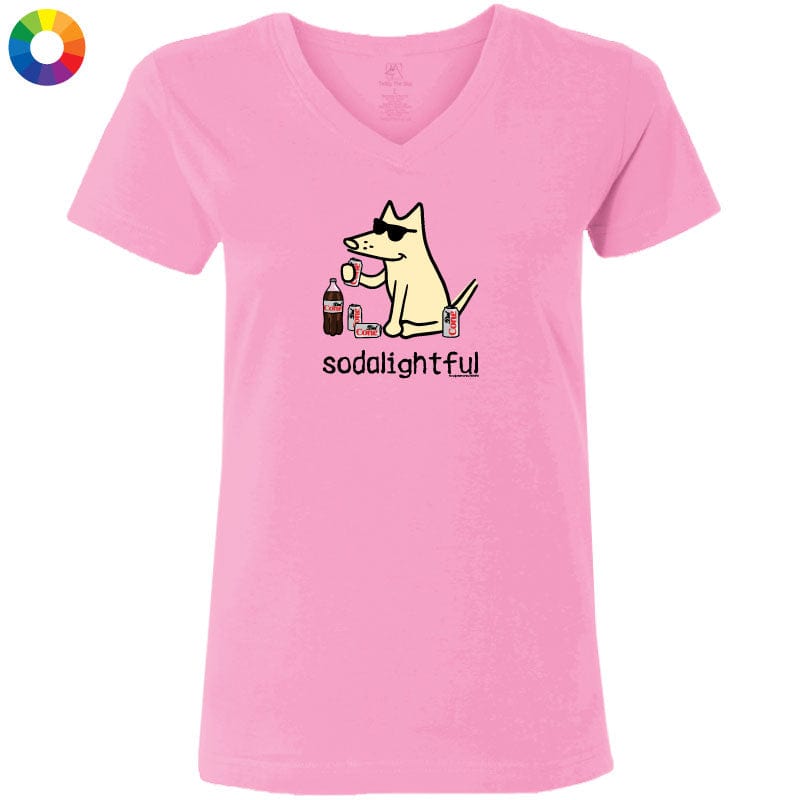 This ladies' v-neck tee, available in natural heather or light pink, offers softness and style. The light pink option is crafted from 100% combed, ringspun cotton, while the natural heather is made from a cozy cotton-poly blend. Like all our puppy-soft apparel, it’s proudly decorated in the USA and is machine washable and dryable for easy care.